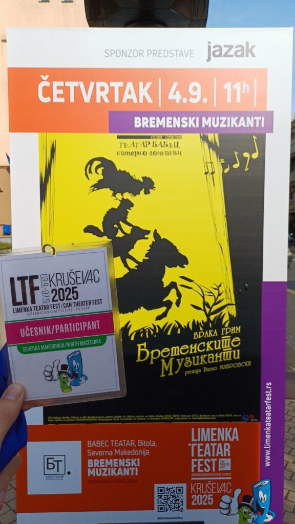 Babec Theater performed with the play “The Bremen Musicians” at the 4th edition of the Limenka Theater Fest in Krusevac, Serbia. The performance was on 04.09.2025 and this is Babec Theater’s third participation in this festival, after 2022 with the play “Jovanche and Marika” and “Visiting Kate and Freda” in 2024.